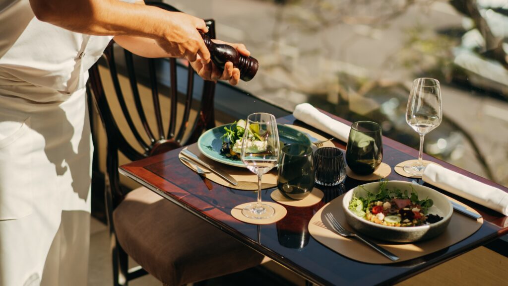 El menú propone un recorrido de sabores que combina técnicas contemporáneas, productos cuidadosamente seleccionados y una puesta en escena pensada para compartir y disfrutar sin apuros. La experiencia comienza con un amuse-bouche de paté de foie con arándanos y masa crocante, y continúa con una selección de entradas a elección: Curado de salmón tricolor, acompañado de ahucamolli cremoso, croutones de brioche, okra y hojas baby, o Confit de pato pekín, con espuma de maíz dulce, vegetales pickle artesanales, jugo de cocción reducido y polvo de hongos.
