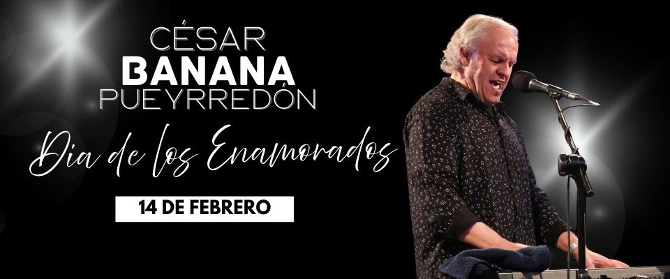 César Banana Pueyrredón en vivo este Día de los Enamorados César «Banana» Pueyrredón festeja juntos a todos sus fans el Día de los Enamorados en el ColiseoADQUIRÍ TUS TICKETS Una noche romántica para revivir los clásicos de la etapa Banana —Toda una noche contigo, Nadie podrá hacerme olvidar, Conociéndote— y los grandes hits de su carrera solista, como Cuando amas a alguien, Mi buen amor, No quiero ser más tu amigo y Tarde o temprano. Una cita imperdible: la noche ideal para reencontrarse con canciones que atraviesan el tiempo y un artista cuya música no tiene fecha de vencimiento. Funciones: Sábado 14 de febrero. Lugar: Teatro Coliseo, Argentina. Dirección: Marcelo Torcuato de Alvear 1125, Buenos Aires.