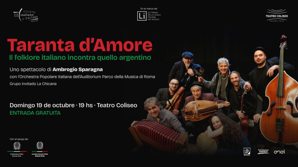 El Istituto Italiano de Cultura de Buenos Aires y el Teatro Coliseo presentan Taranta d’Amore –