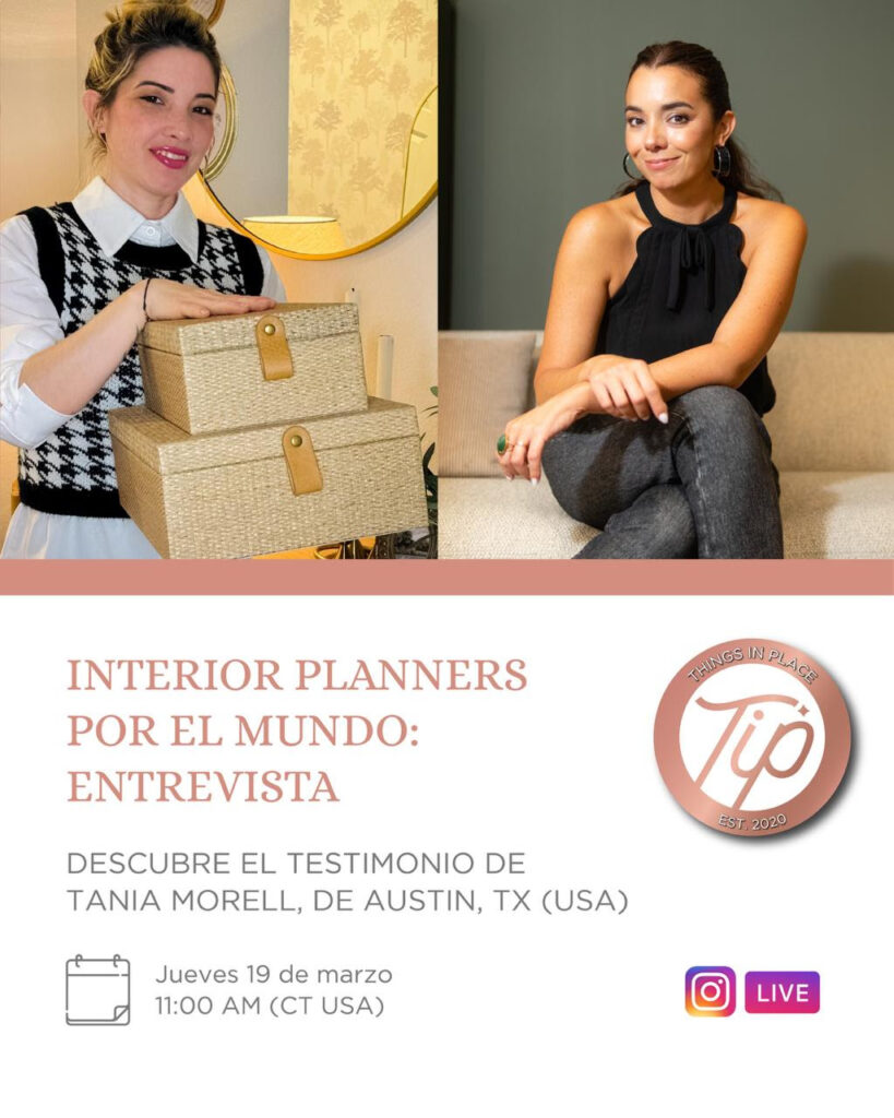 Interior Planners por el mundo En este IG Live nuestra gurú del orden, Marietta Vitale, conversa con Tania Morell (@tmmorell91), Interior Planner certificada que hoy ya se encuentra trabajando en Austin, Texas . Una charla real sobre cómo pasar de la formación a la acción, qué sucede al comenzar y cómo es desarrollar esta profesión en otro país. Un espacio cercano, honesto e inspirador para quienes sienten que el orden puede convertirse en su camino.